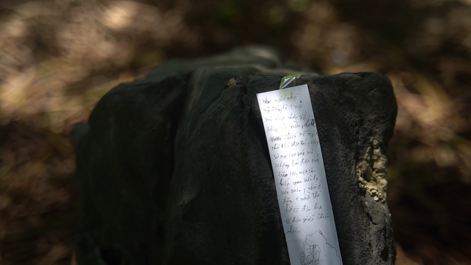 Cùng lúc đó, nhóm hai bạn Linh Thân (Tắm Đêm) và Hồng Khang (Bán Ẩn) mang đến buổi sáng tác/trình diễn “Đám tang cho cây”. Chương trình bắt nguồn tại chính căn nhà tuổi thơ của một người bạn địa phương mới-làm-quen, và lắng nghe câu chuyện về không gian sống của ba thế hệ gia đình bạn trước kế hoạch giải tỏa và phát triển đô thị dọc dòng Sông Cái đang cận kề. Người tham dự được mời gọi chắt lọc hình ảnh, âm thanh, ký ức để viết lời điếu văn cho những cái cây, đất cát, vật dụng thường nhật, con vật, dòng sông – những sinh thể đã sống, đã chứng kiến, đã/đang/sẽ đi vào quên lãng. Những điếu văn sau đó được đọc lên, rồi đốt thành tro để trộn vào đất như một nghi lễ tiễn đưa, cũng là một hành động chống quên lãng, mong sự ghi nhớ không chỉ ở trên những trang giấy, cho nó đi xa hơn, cả đất trời sẽ ghi nhớ. Qua đó, vai trò của thực hành lưu trữ không chỉ đơn thuần là ghi chép lại quá khứ, mà còn đối thoại với hiện tại, trở thành minh chứng cho những điều đang diễn ra, và cho cả những gì có nguy cơ biến mất khỏi bản đồ địa lý.