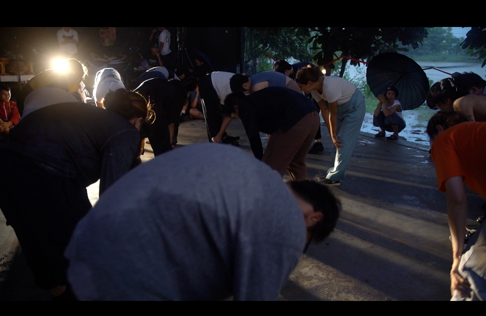 Tinh thần ấy hiện diện trong “Ê, with love” của biên đạo Diệu Thảo, là một hành trình lắng nghe những mảnh âm thanh ký ức trong quá trình lớn lên và hình thành bản thể của nhóm năm diễn viên múa. Nó cũng xuất hiện trong “Đứng trên khu vườn, gió hơi nhẹ”, nơi hai mươi người hiện diện trong cùng một khung cảnh, mỗi người như một lát cắt của bức tranh siêu thực rộng lớn hơn, dưới sự đạo diễn của nghệ sỹ Hoàng Anh. Và càng rõ nét hơn trong màn trình diễn “Gilaong” (tiếng Chăm nghĩa là “Hướng”) của nghệ sỹ Kau Ngọc Huyền, một tiếp diễn từ dự án “Haluw – Nguồn” từng ra mắt tại Hội An năm ngoài trong khuôn khổ của Nổ Cái Bùm. Màn trình diễn cùng workshop làm gốm Chăm là nỗ lực vừa lưu giữ, vừa đối thoại với văn hóa bản địa, một hình thức kết nối giữa nghệ thuật và gốc rễ.