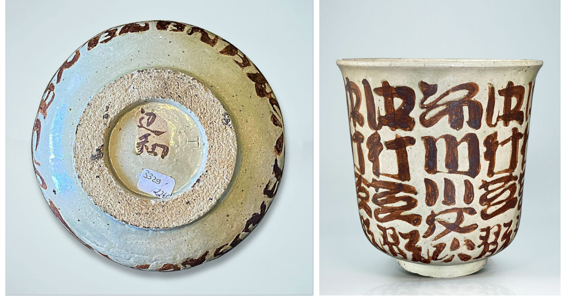 Gốm Biên Hòa mộc hai chữ Hán 边和 rời không có khung, viết tay bằng mực hoặc men.