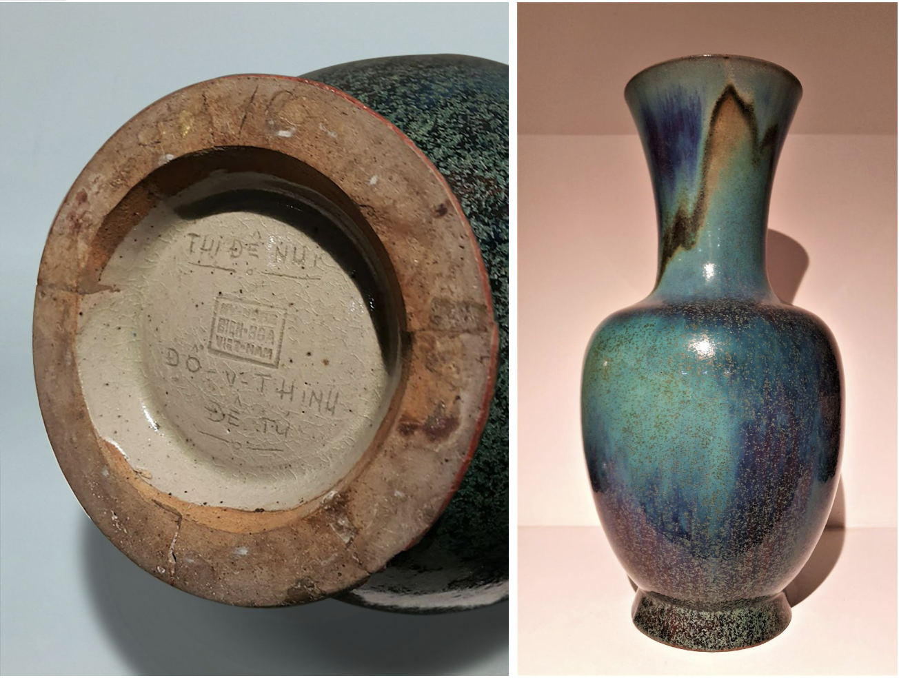 Gốm Biên Hòa mộc hai chữ Hán 边和 trong khung hình bầu dục có viền nhấn lõm.