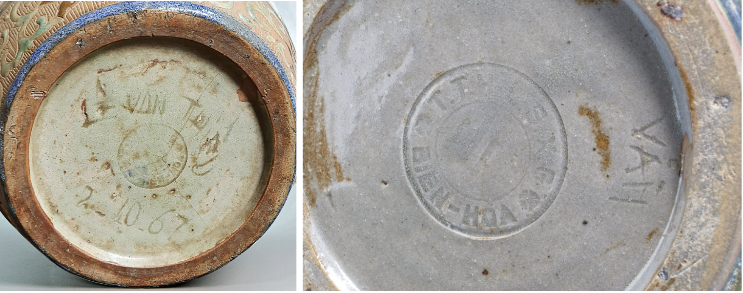 Một số trôn bình giai đoạn đầu của gốm Biên Hòa không có mộc, hoặc chỉ có ký tự viết tắt tên tác giả, nghệ nhân tạo tác.