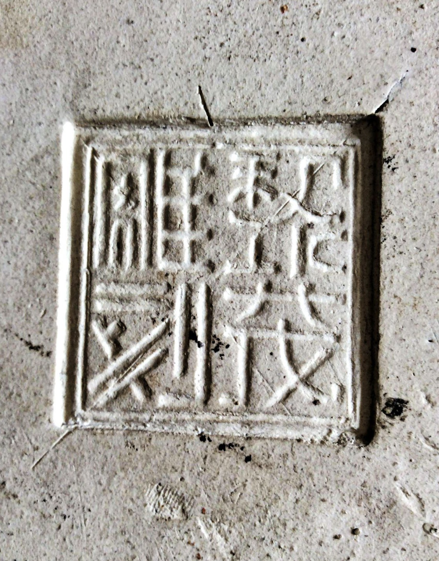 Gốm Biên Hòa mộc hai chữ Hán 边和 rời không có khung, đóng bằng con dấu.